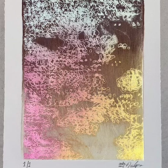 I am thrilled to share with you an exclusive opportunity to own a piece of groundbreaking fine art printmaking—Light Noise Glass Monotype. This revolutionary new technique developed through years of experimentation and collaboration creates one of one prints that have never been done before.
